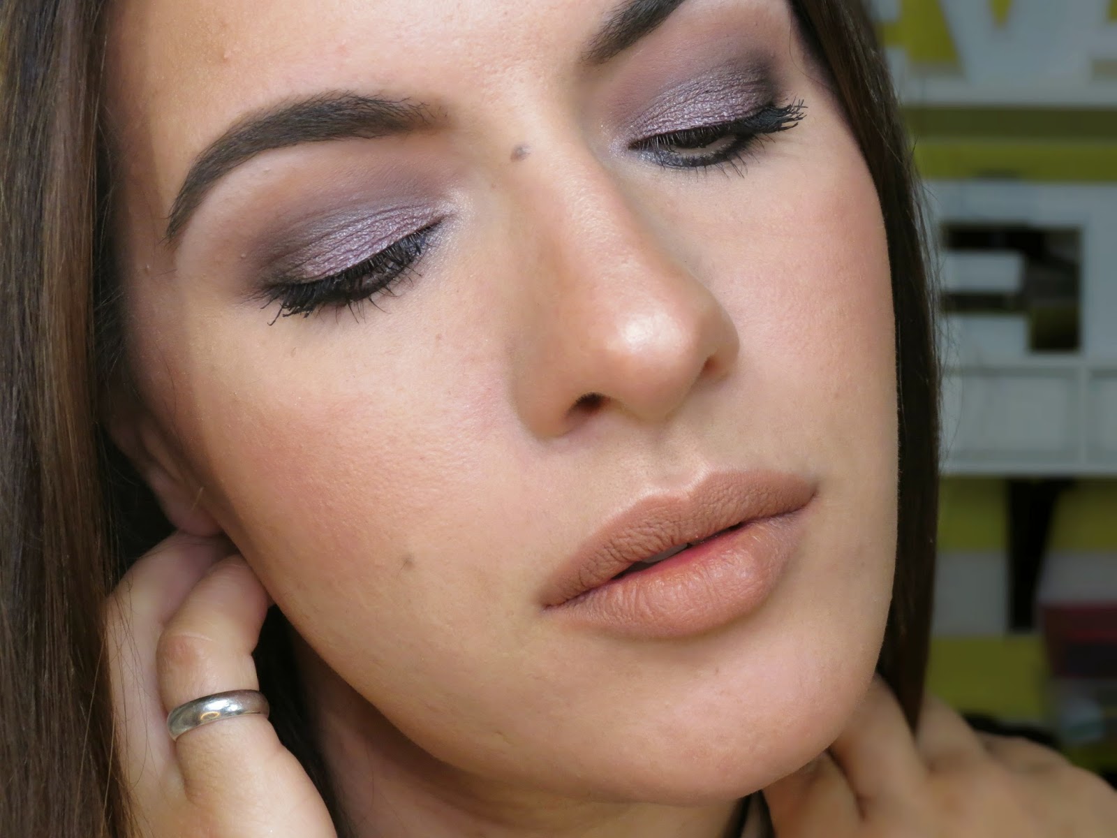 Uma dica: esta paleta de cores, cinzentos, lisases, malva, são perfeitos para olhos azuis. Quando maquilho alguém com esta tonalidade de olhos, é a estes tons que recorro, de forma a fazer sobressair ainda mais a cor dos olhos.